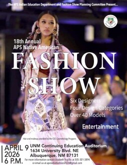 The APS Fashion Show Committee is proud to present the 18th Annual Native American Fashion Show. It is our goal to bring the community together and showcase Native Art and Design. This is a student organized event and is designed to develop leadership skills. This year there will be 6 Native designers and over 40 models, as well as music and entertainment.